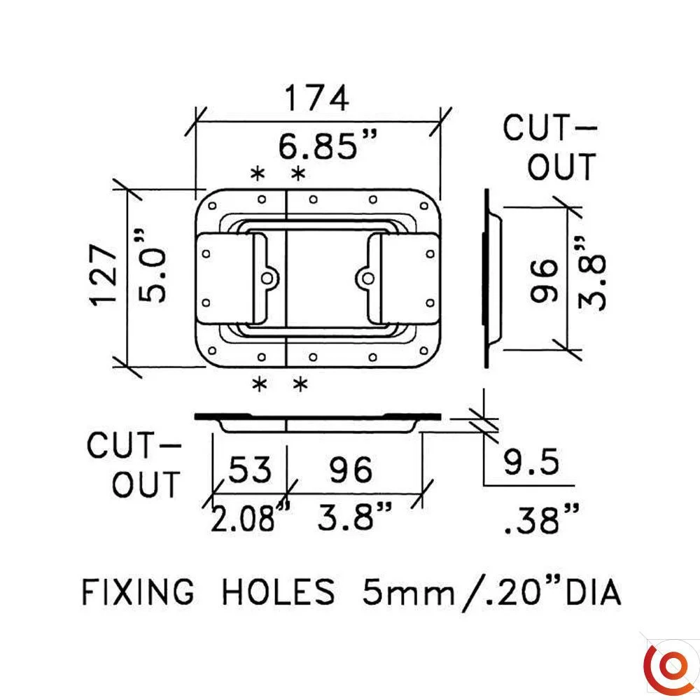 Arrêtoir de couvercle 174 x 127 x ép. 9.5 mm (avec passage de profilé) d0558z Penn Elcom pour la fabrication de votre flight case.