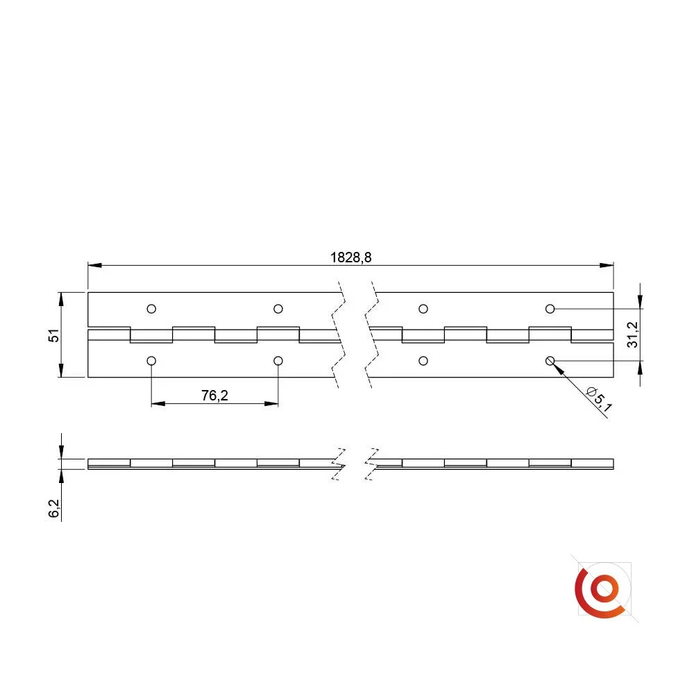 Charnière piano en barre largeur 51 mm, idéales pour la fabrication de vos flight cases.
