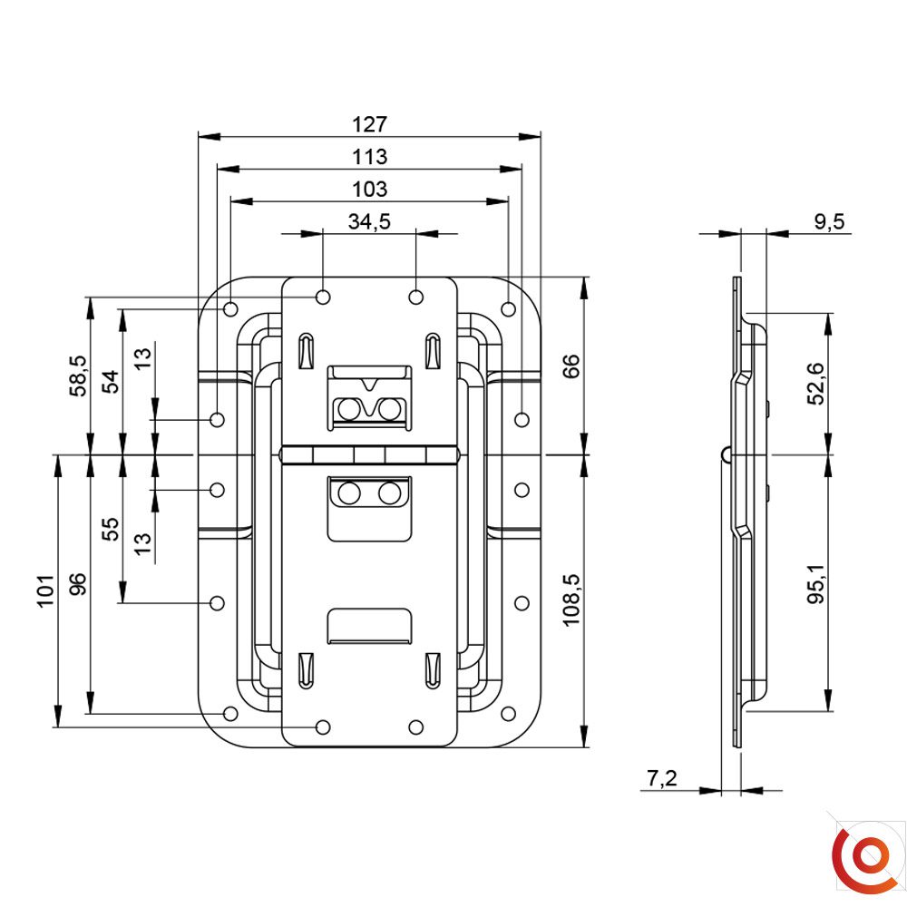 Caractéristiques techniques de Charnière arrêtoir grand modèle de couvercle 270836 :