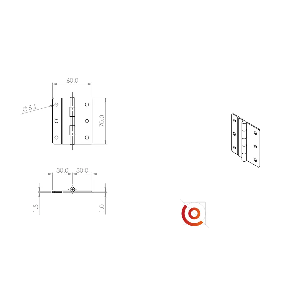 Charnière compatible avec le profilé de capot plat 150639 permettant d’articuler la capot de votre flight case.