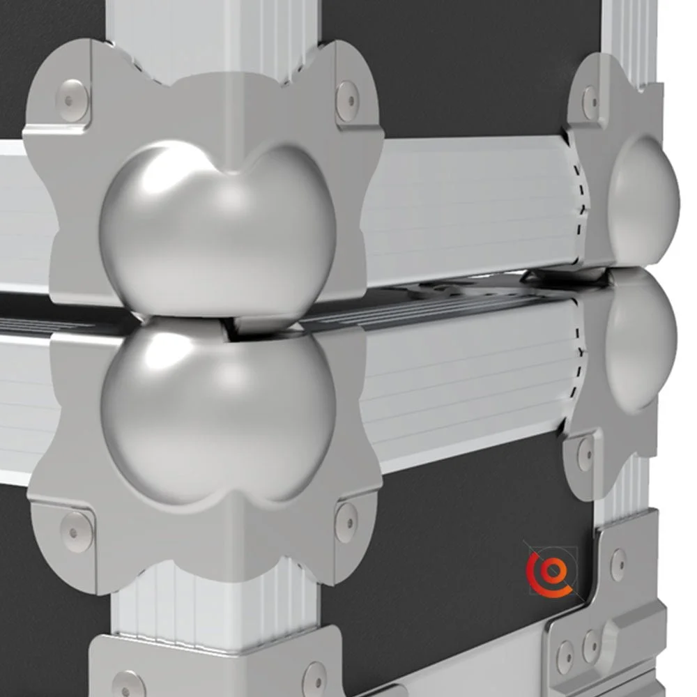 La particularité de ce coin boule c’est qu’il y a une découpe imbriquée pour l’empillement des flight case. Ce system est beaucoup plus stable et securisant. Cet accessoire de flight case est compatible avec le fermoir L3000-7 spécialement créé à cet effet. Il vous permettra de verrouiller les flight cases gerbés l’un à l’autre.
