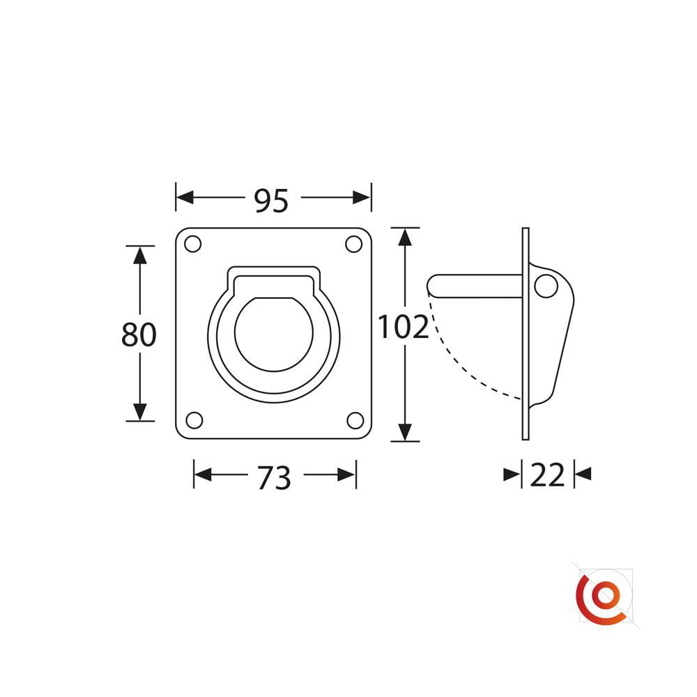 Anneaux métal acier de levage rétractable 5801 pour la fabrication de flight case.