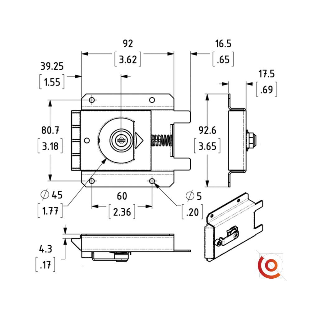 Fermoir capot plat avec serrure et clefs Penn Elcom pour la fabrication de vos flight cases.