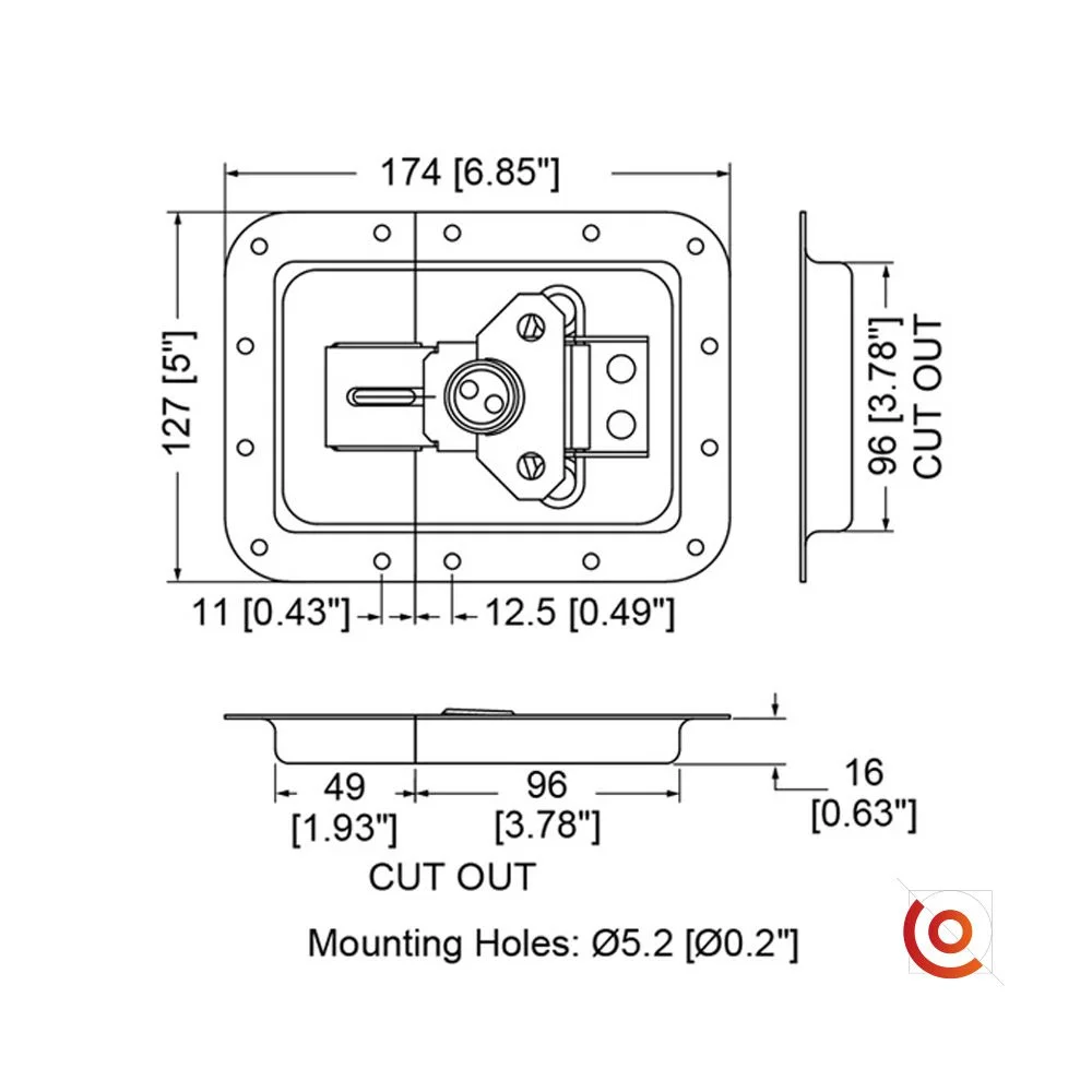 Fermoir papillon encastré grand modèle cadenassable Penn Elcom pour la fabrication de flight case.