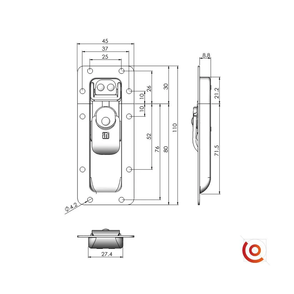 Il dispose d’un mécanisme à ressort qui permet une ouverture et une fermeture simples et rapides, offrant une grande praticité. Ce fermoir est idéal pour la fabrication de flight cases, assurant à la fois sécurité et commodité. Sa conception robuste garantit une fixation fiable tout en facilitant l’accès à l’intérieur du rack lorsque cela est nécessaire. Grâce à sa facilité d’utilisation, il permet de manipuler facilement les équipements tout en offrant une protection optimale. Ce fermoir est un choix parfait pour les professionnels recherchant un système de verrouillage fiable et pratique pour leurs équipements.