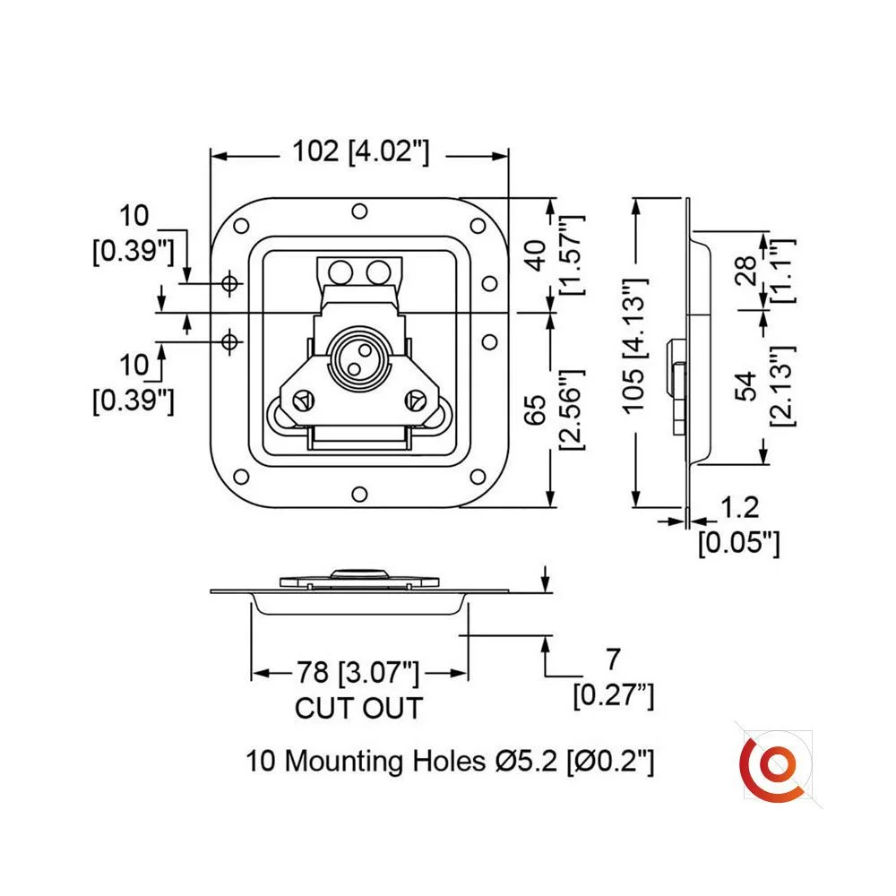 Fermoir papillon moyen modèle encastrable pour la fabrication de flight case.