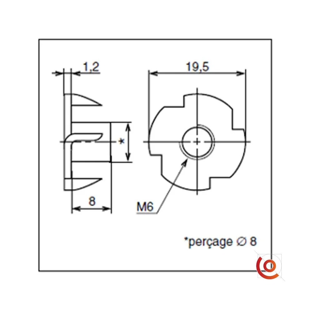 Optez pour un Ecrou à frapper 6mm/8mm de diamètre, idéal pour fixer solidement les différents éléments de votre flight case.
