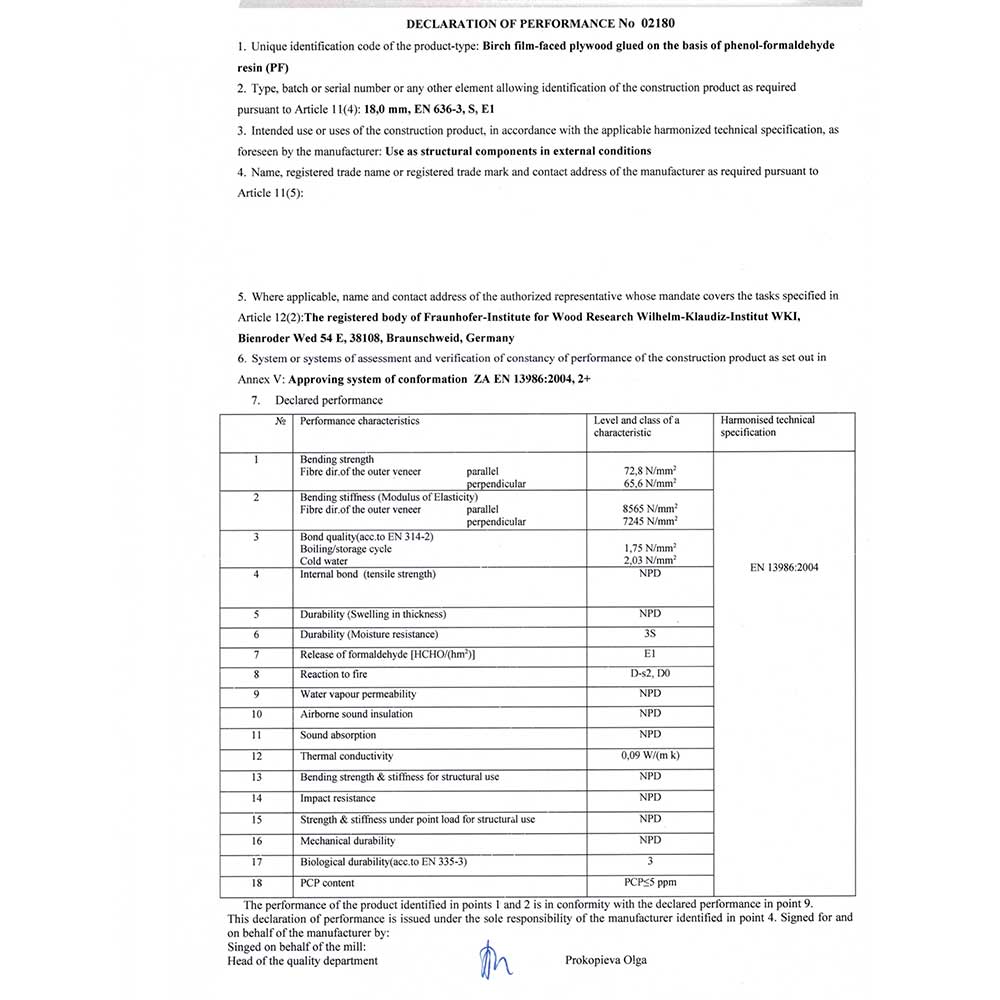 • Revêtement film phénolique: feuilles contrecollées résistantes à l’eau.