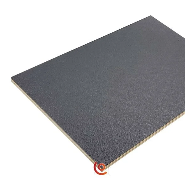 Panneau contreplaqué tout bouleau recouvert d’un film PVC vinyle gris foncé.