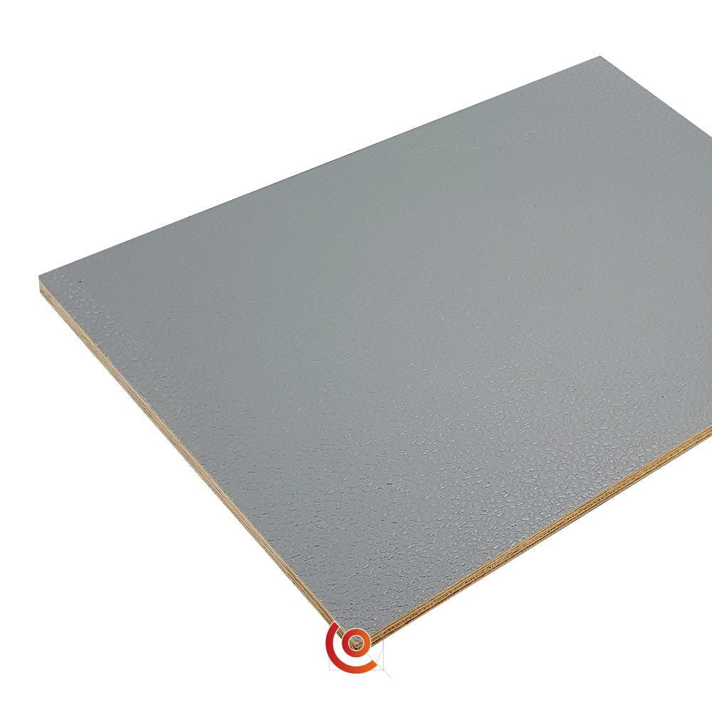 Panneau contreplaqué tout bouleau recouvert d’un film PVC vinyle gris.