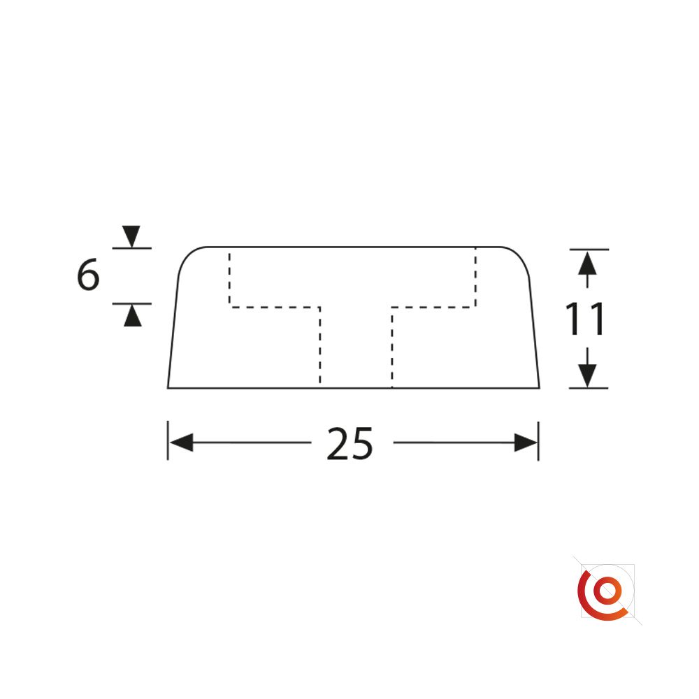 Caractéristiques techniques du Pied caoutchouc 25×10 mm 4900 :