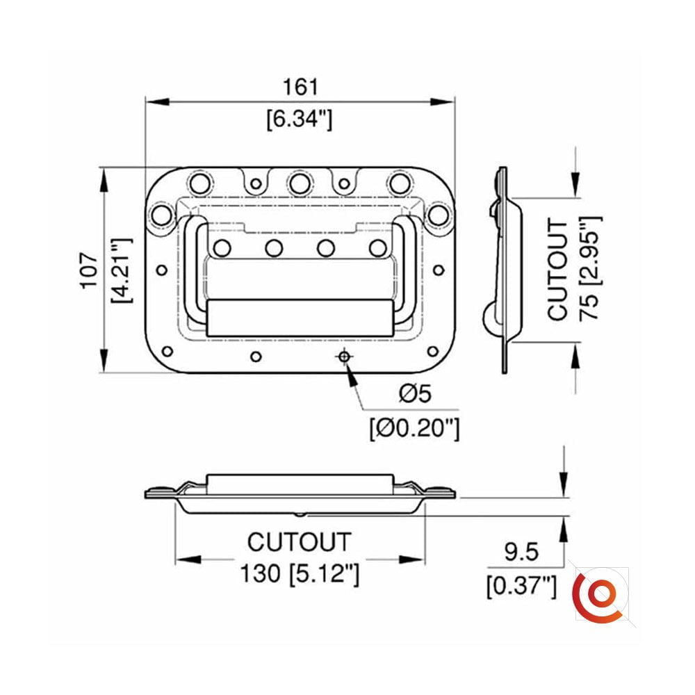 Poignée encastrée h7159z Penn Elcom pour flight case.