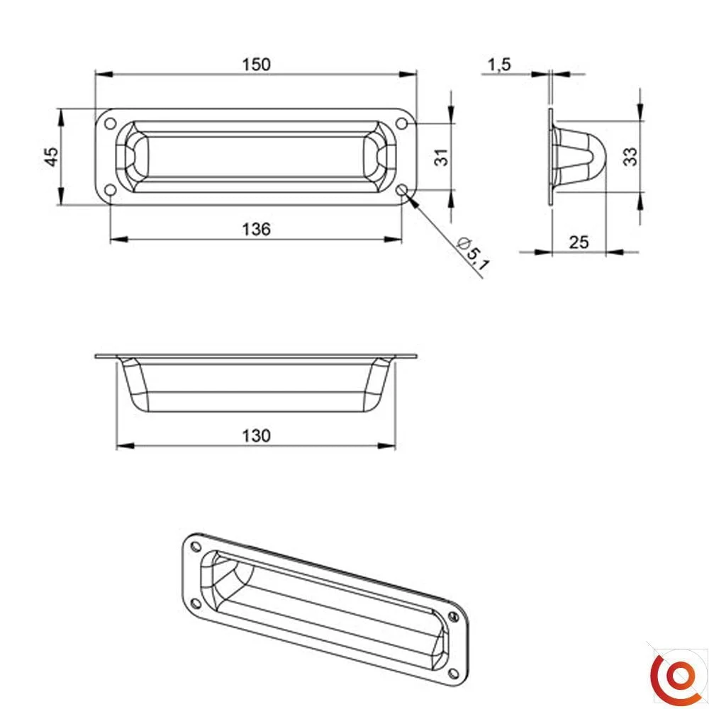 Acheter la poignée métal à encastrer. Spécialement étudié pour les flight cases de petites hauteurs comme les rack 2u.