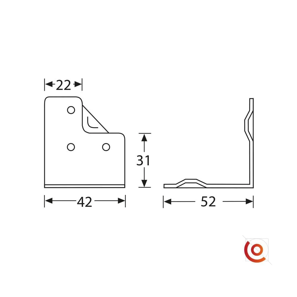 Renfort d’Angle 42 x 52 mm avec P.P.