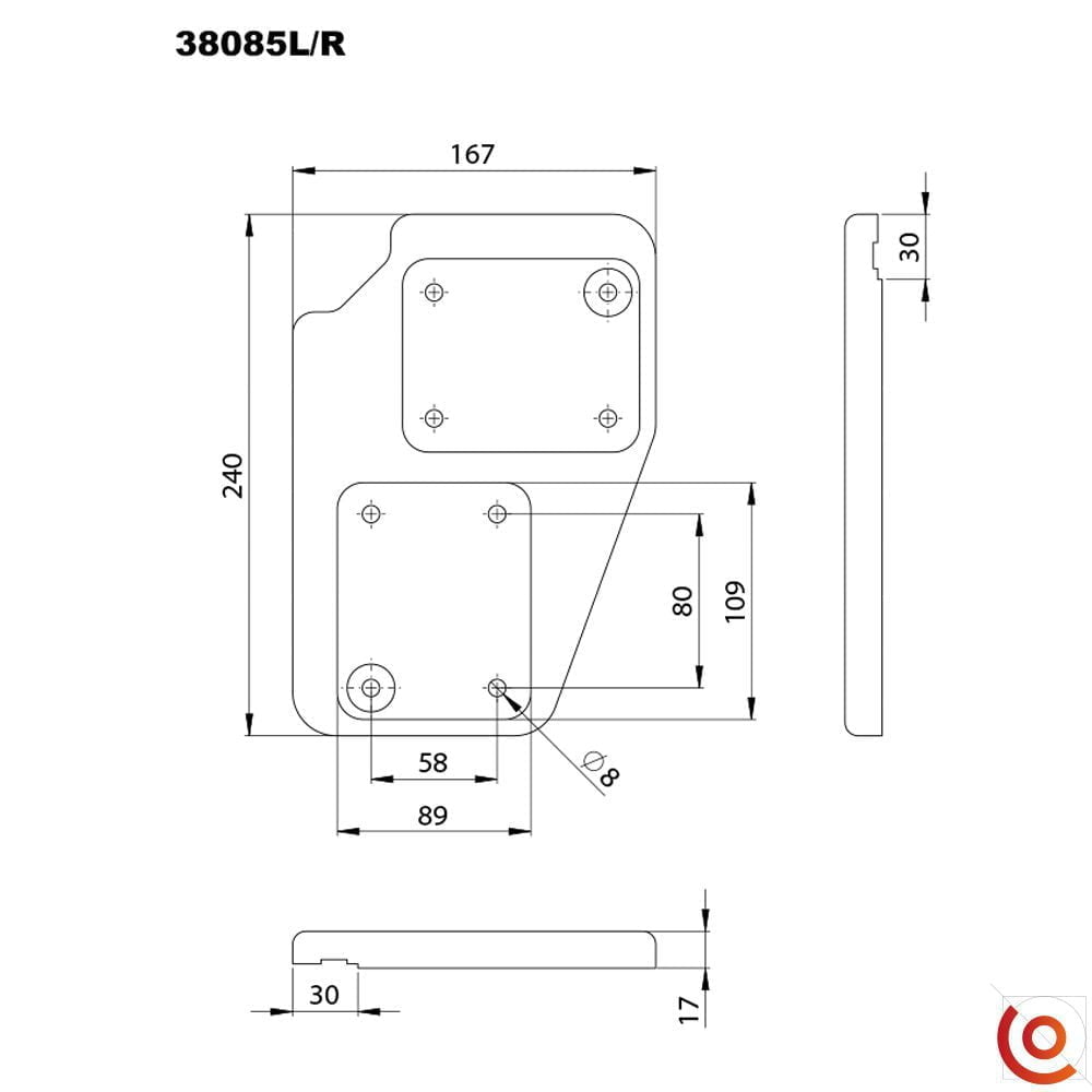 Platine pour roulettes en polyamide (partie Gauche) 38085L pour la fabrication de votre flight case.