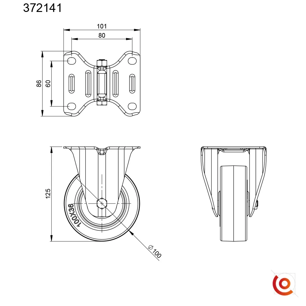 Caractéristiques techniques de la Roulette fixe, diamètre 100 mm 372141: