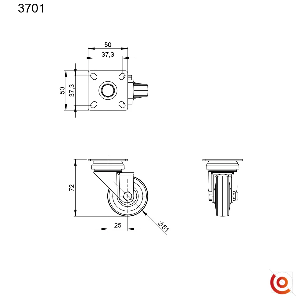 Caractéristiques techniques de la Roulette pivotante, diamètre 50 mm 3701: