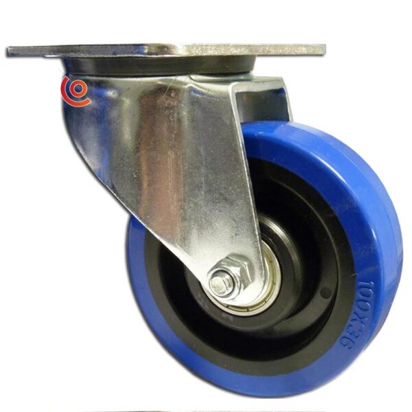Caractéristiques techniques de la Roulette renforcée bleue pivotante sans frein diamètre 100 mm 211909 :