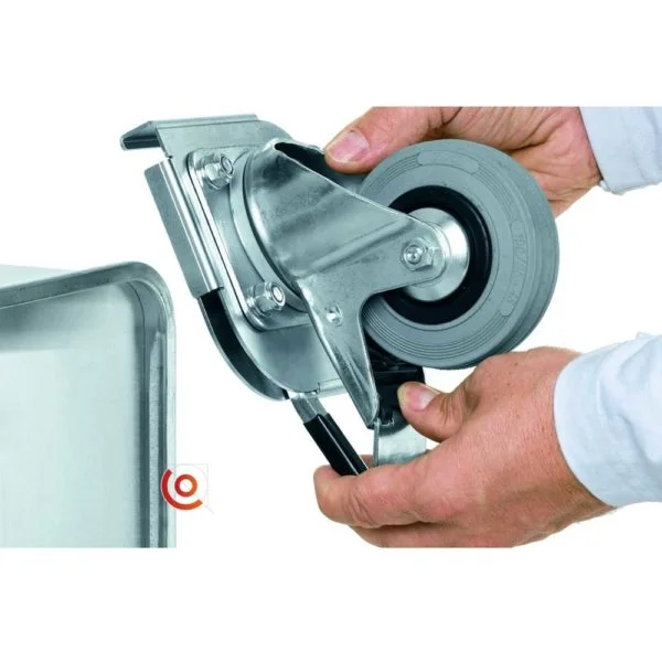 Roulettes amovibles pivotantes à clipser pour caisse Zarges