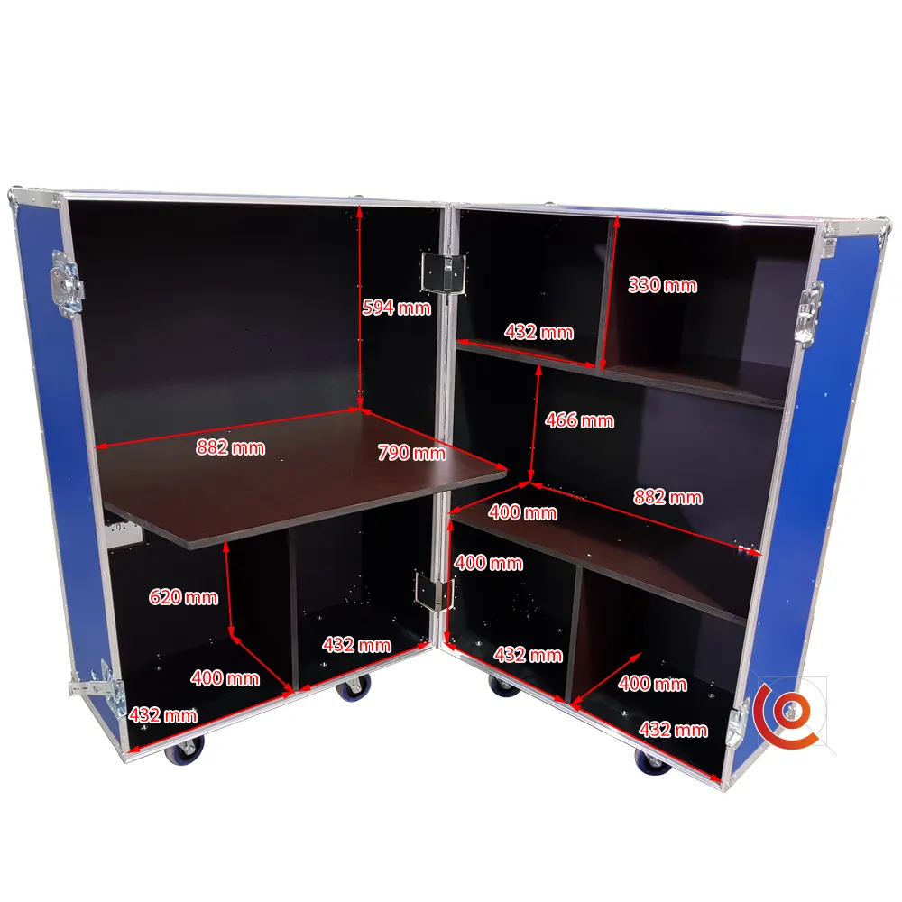 Caractéristiques techniques du flight case bureau mobile :