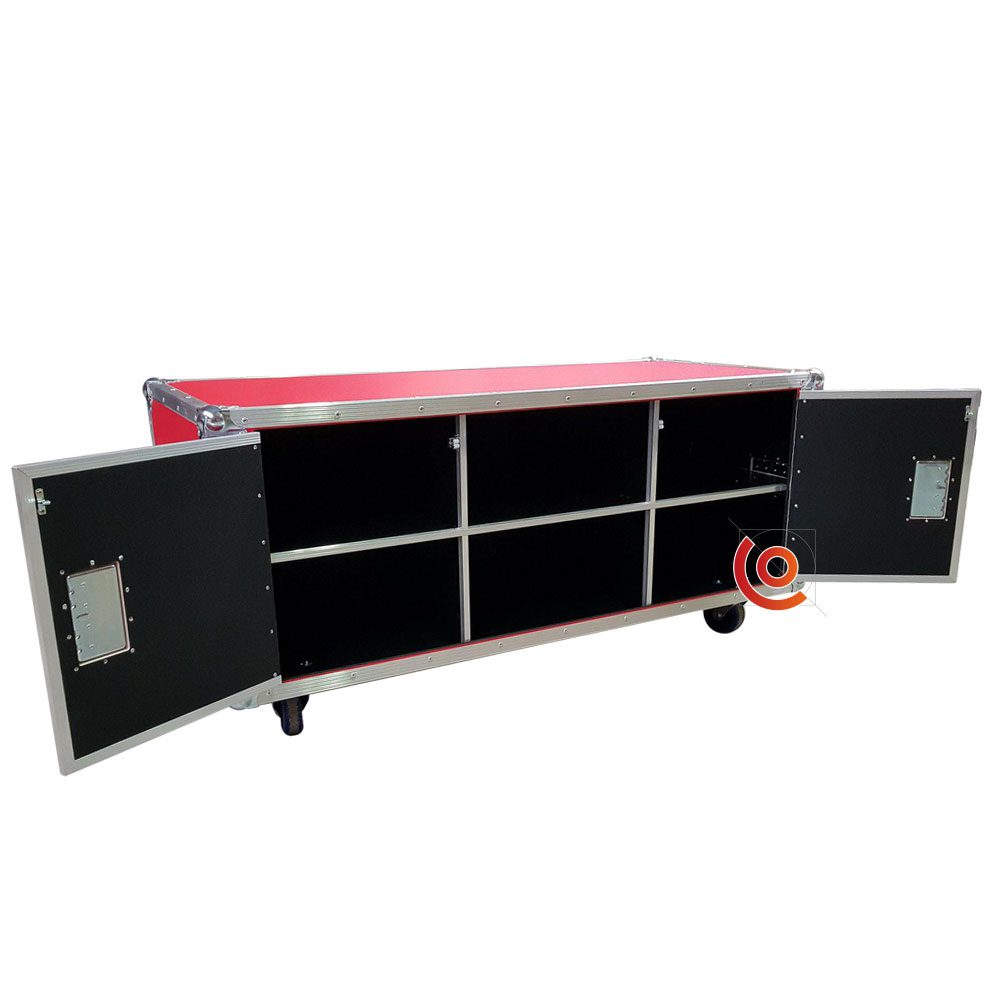 Caractéristiques techniques du flight case meuble de télévison avec tablette centrale: