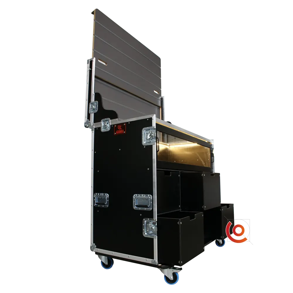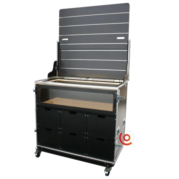 Ce flight case vitrine est conçu pour allier transport, rangement et mise en valeur de vos produits.