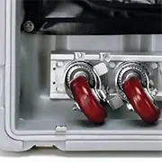 Renforce la résistance du panneau inférieur des valises à rack, tout en permettant le déverrouillage par bouton des roulettes pivotantes. Choix de diamètre de roue de 8,89 cm ou de 12,7 cm