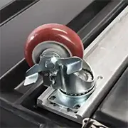 Deux (2) roulettes en coin boulonnées sur le bord inférieur du conteneur pour un déplacement de type chariot. Limite de charge 34 kg/roue - poids de conteneur brut 68 kg.