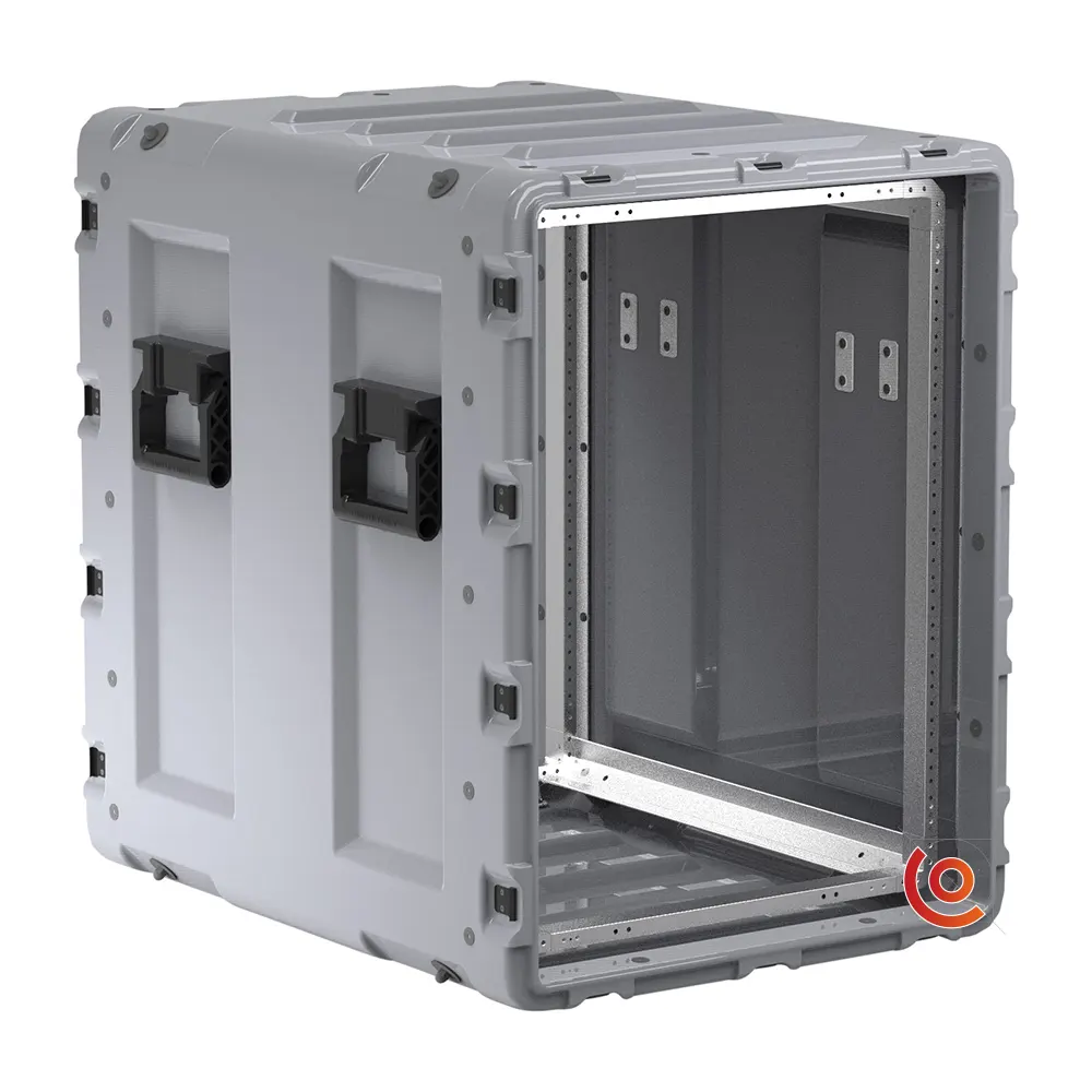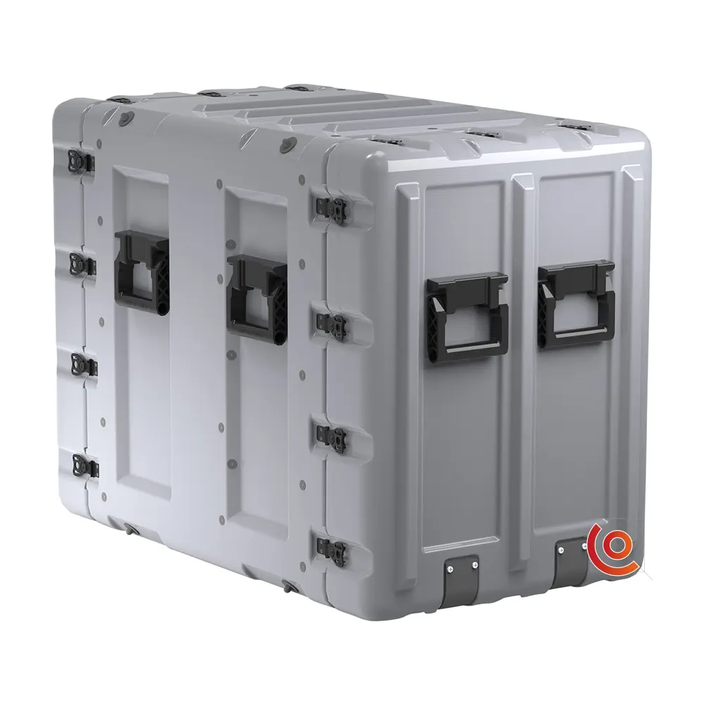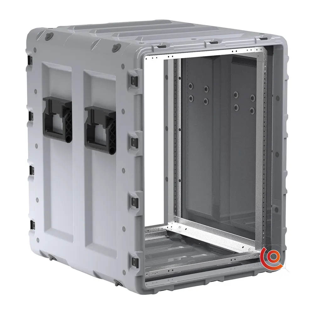 Le conteneur MAC Rack™ protège grâce à une coque rotomoulée et un rack antichocs EIA 19″ similaire au Classic Rack.
