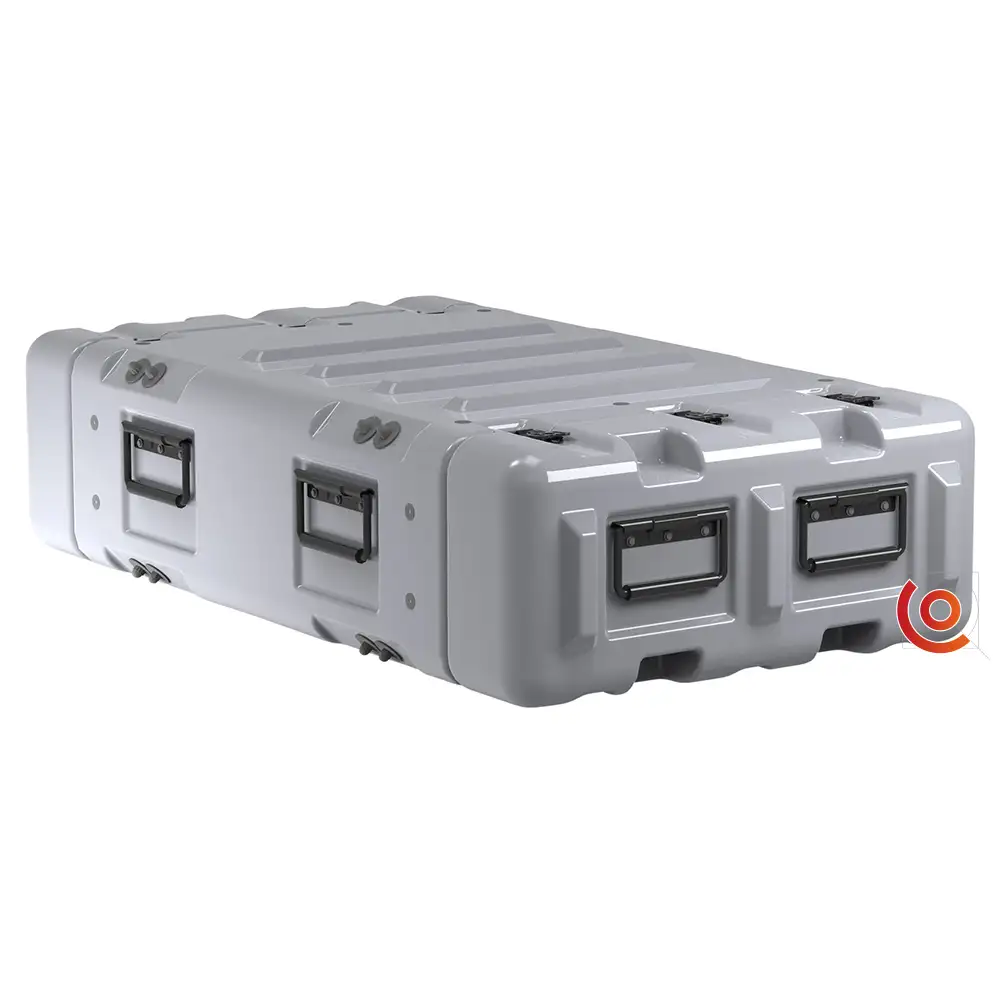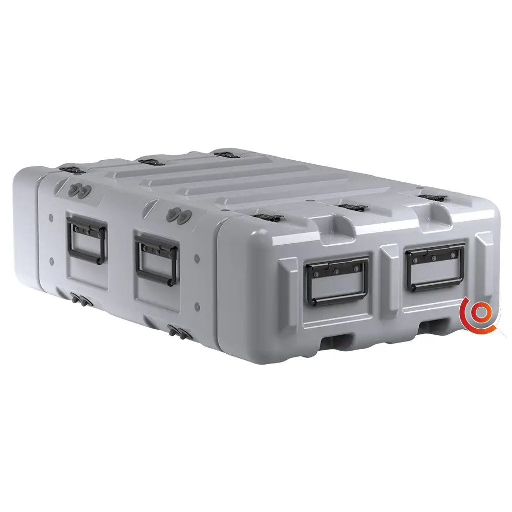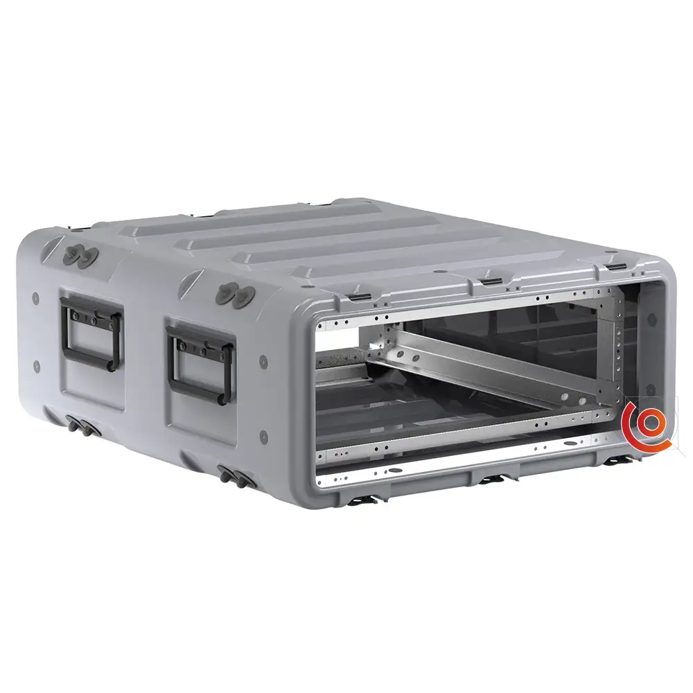 Il rotège avec la coque externe rotomoulée et un rack monté antichocs conforme à la norme EIA de 19″ (48,26 cm) que le Classic Rack, mais avec un espace de stabilité réduit.