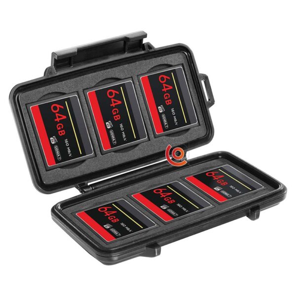 Contient 6 compartiments différents pouvant contenir des cartes cartes flashs compactes.